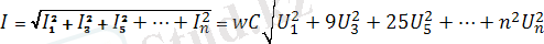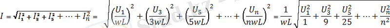 Яғни, периодты синусотдалдық емес пайдалы токтың мәні түбір астындағы тұрақты және гармоникалық құраушыларының квадраттарының қосндысындыларына тең. Осылайша периодты синусоидалық емес пайдалы кернеудің мәнін есепке алсақ болады: