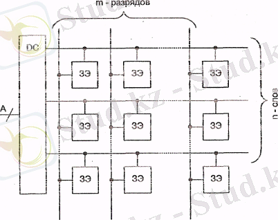 DC дешифраторы қажетті сөзді таңдап, таңдалған жолдың барлық есте сақтайтын элементтеріне осы сөзге жол ашады. әрі қарай есте сақтау құрылғысының жұмыс режиміне байланысты ақпаратты таңдалған ұяшықтан оқу немесе ақпаратты таңдалған жолдың ұяшығына жазу жүзеге асырылады. Қарастырылған құрылым 2D құрылым деп аталады. Оның басты кемшілігі - жады көлемін үлкейткенде дешифратордың шығыстар саны да жоғарылайды.