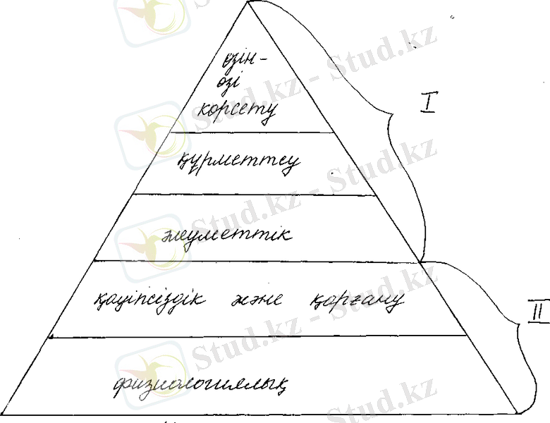 Абрахам Маслоу негізгі қажеттіліктерді бес топқа бөлген: