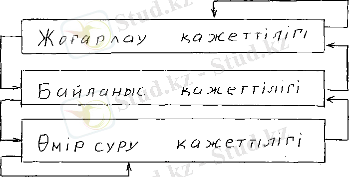 Альдерфердің иерархиялық қажеттілігі бойынша пайда болу және керісінше төмендеуі.