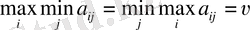 егер екiншi ойыншы j - iншi стратегияны қабылдаса максиминдi ұтылысының көрсеткiшiн iздейдi, яғни бiрiншi ойыншының максималды ұтысын анықтайды. өзiнiң барлық n j-iншi таза стратегиялар iшiнен бiрiншi ойыншы минималды ұтыс алатындай стратегияны таңдайды, яғни ойынның жоғарғы бағасын анықтайды («минимакс») :