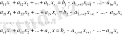 r<n теңсіздігі орындалсын. Егер х 1 , х 2 , …, х r белгісіздердің алдында тұрған коэффициенттерден құрылған анықтауыш (базистік минор) нөлге тең болса, онда х 1 , х 2 , …, х r белгісіздері базистік белгісіздер деп, ал қалған n- r белгісіздер бос белгісіздер деп аталады.
