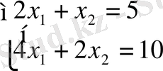 оның бірден көп шешімі бар: х 1 =С 1 , х 2 =5-2 С 1 немесе (С 1 , 5-2 С 1 ) . Мұндағы С 1 -кез-келген сан.
