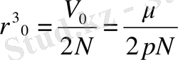 Элементарлық бір куб ұяға келетін υ = г 0 3 көлемді табу үшін V 0 көлемді грамм-молекуладағы ұялардың, ондағы (бір грамм-молекуладағы) иондардың санымен бірдей болатын санына, яғни 2 N-гt, бөлеміз: