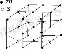 Күкіртті цинктің (ZnS) кеңістік решеткасы Сурет 1. 1. 5 көрсетілген. Қара дөңгелекшелер цинктің оң иондаррын (Zn+), ақ дөңгелекшелер күкірттің теріс иондарын (S-) кескіндейді. Күкіртті цинк решеткасының құрылысы тас тұзы решеткасынң құрылысынан едәуір күрделірек.