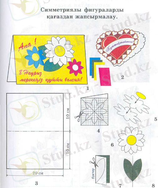 1. 2 Жапсырмалау. Симметриялы, асимметриялы фигураларды қағаздан жапсырмалау . . . 7