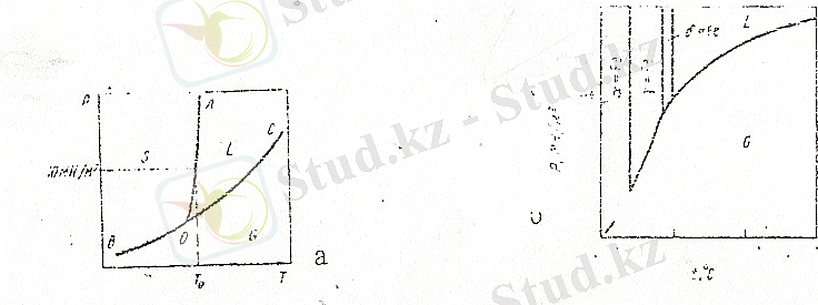 деп те аталады. Таза металдардың фазалық күй диаграммары « температура-қысым» координаттарында тұрғызылған жазық диаграммаларға жатады. (1а-суретте) бір компонентті системадағы фазалық тепе-теңдіктер диаграммасы көрсетілген. Диаграмманың ВОС сызығынан төменгі бөлігіне газ тәрізді металл (г), ал АОС бөлігінде- сұйық (L) және АОВ бөлігінде қатты (s) металл тұрақты болады. ОС, ОВ және ОА сызықтары екі фазалы L