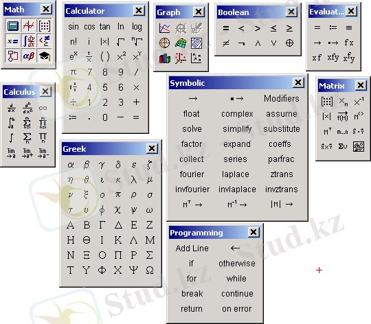 - MathCad жүйесінің интерфейстік ортасы. Интерфейс мыналардан құралады:Тақырып қатары.