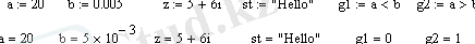 қолданылады. Мәтіндік айнымалылар тік жақшамен беріледі. Логикалық айнымалылардың мәні 0 немесе 1 болады.