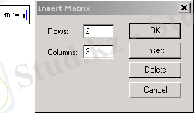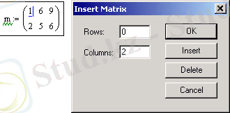 Массивті құрудың бірнеше әдістері бар. Матрицаларды құрудың ең оңай әдісі Insert/Matriх командасының көмегімен жүзеге асады. Осы команданы шақырғанда экранда матрицаның баған мен қатар санын көрсететін диалогты терезе пайда болады (вектор-бір калонкалы матрица) . Қара тіктөртбұрыш, яғни матрицаның элементтерін көрсететін матрицалық шаблон пайда болады.