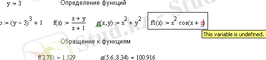 MathCad жүйесінің қолданушы функциясының программалау тілі сияқты қолданушы функциясының тапсырмасына мүмкіндігі бар. Қолданушы функциясының тапсырмасы үшін ат беру керек, одан кейін жақшаға үтір арқылы оның барлық аргументтерін теру керек.