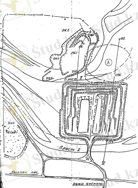 Жоспардағы трассаның формасын карьер аласының өлшемдеріне басшы көтерме және профиль элементтеріне сәйкес келеді.