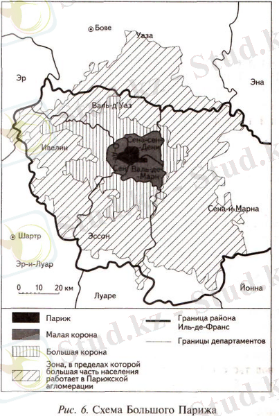 Париж және Париж аудандары -облыстың территориясы солтүстік француз жазықтығымен сай келіп, құрамына Иль-де-Франс, Нормандия, Пикардия, Шампань, Бургундия және Орлеан сияқты тарихи провинциялары жатады. Қазір Париж - дүние жүзінің ең ірі және ең әдемі қалаларының бірі (сурет 1) . Париж және қаламаңы аудандары Үлкен Парижді құрайды (сурет 2), оның аумағы 1, 7 мың км 2 , халық саны - 8, 2 млн-нан астам.