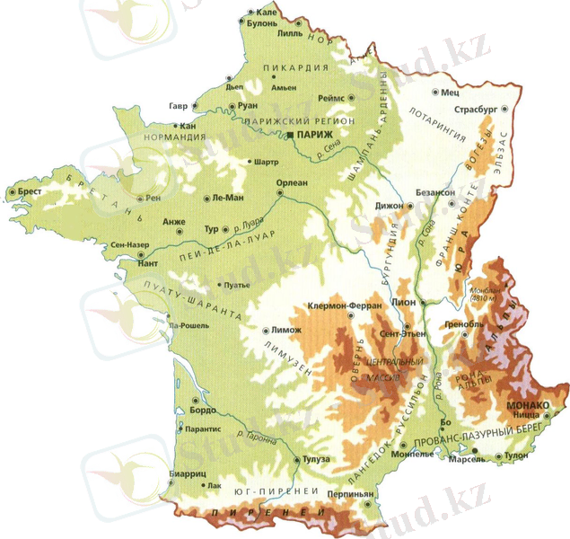 Сурет 3. Францияның физикалық-географиялық картасы.