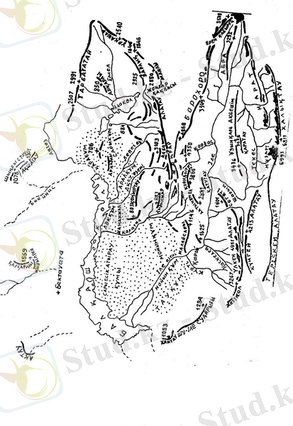 Балқаш көлі алабының орографиялық құрылысының нобайлық сызбасы.