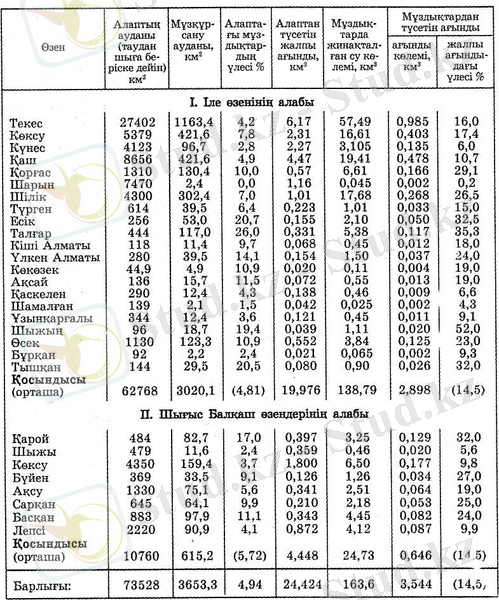 1. 2 Балқаш көлі алабының құрлысы 1-кесте