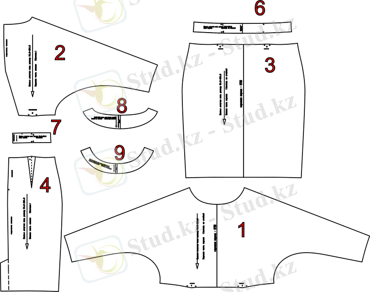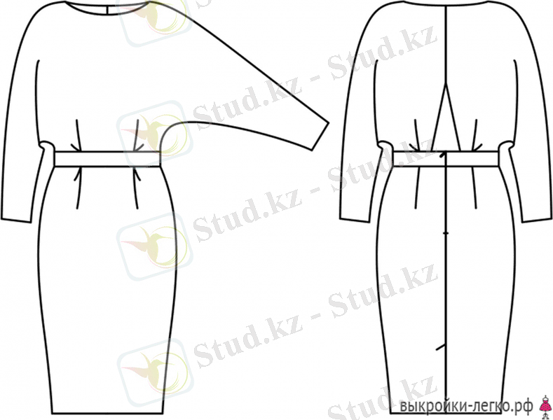 - Артқы бой бөлігінде ортаңғы тігіс пен бүкпе, белден жоғары қарай бұрышты ойық жобаланған.