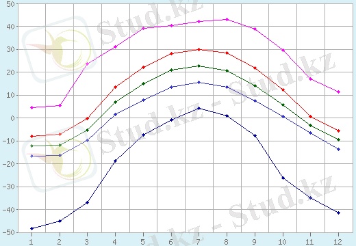 Аймақтағы ауа райы континеттік құбылмалы. Қаңтар айындағы температура -15 -16 Со құраса, мауымда +22-тен +25 Со дейін жетеді. Шауын-шашынның жылдық орташа мөлшері - 125-350 мм. Жазы ұзақ әрі ыстық. Жылына бес ай бойы күндізгі орташа температура 20 °С асып түседі[13] . Қысы қоңыр салқын, жылымықтар болуы мүмкін. Ең қалың қар жамылғысы қараша айында байқалады (31 см) . Ашық, бұлтты және жауын-шашынды күндердің жылдық саны - сәйкесінше 174, 148 және 43 күн. Орташа жылдық бұлттылық коэффициенті - 5, 7 балл. Атмосфералық жауын-шашын ең көп түсетін ай - маусым (35 мм), ең аз түсетін ай - қыркүйек -19 мм (1-сурет) .