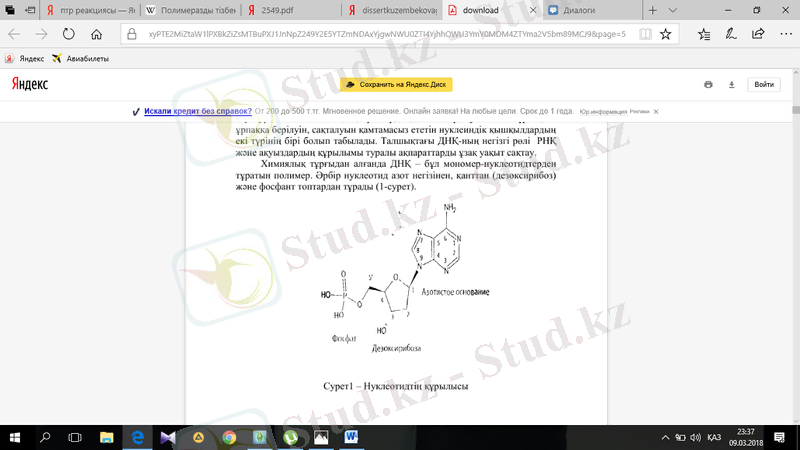 тұратын полимер. Әрбір нуклеотид азот негізінен, қанттан (дезоксирибоз)