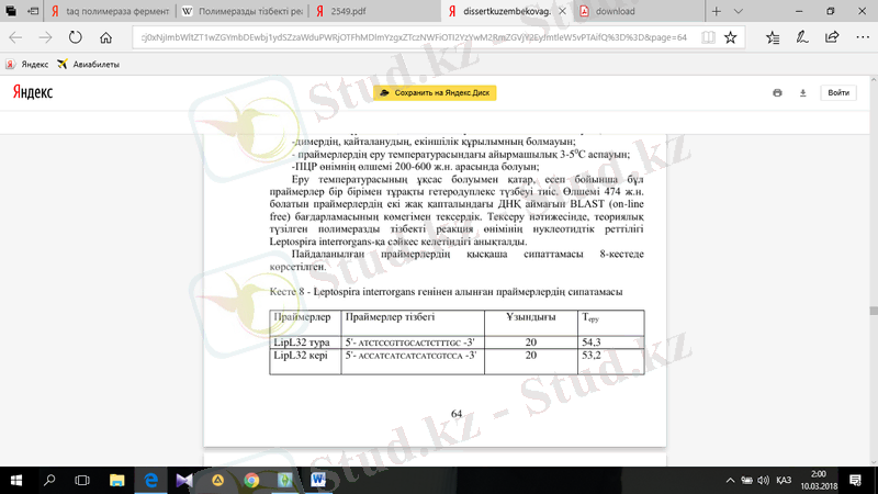 Leptospira interrorgans генінен алынған праймерлердің сипатамасы