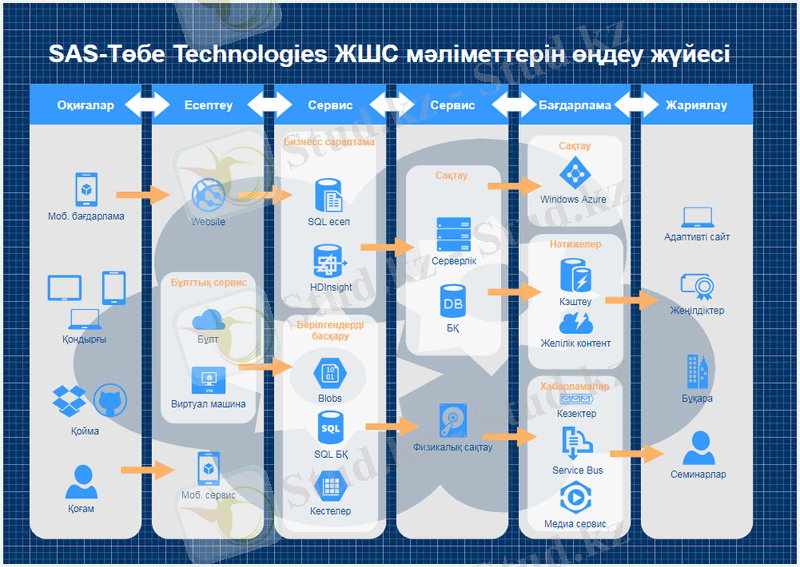 Сурет 1. SAS-Төбе Technologies мекемесінің мәліметтерді ішкі өғдеу жүйесінің сұлбасы