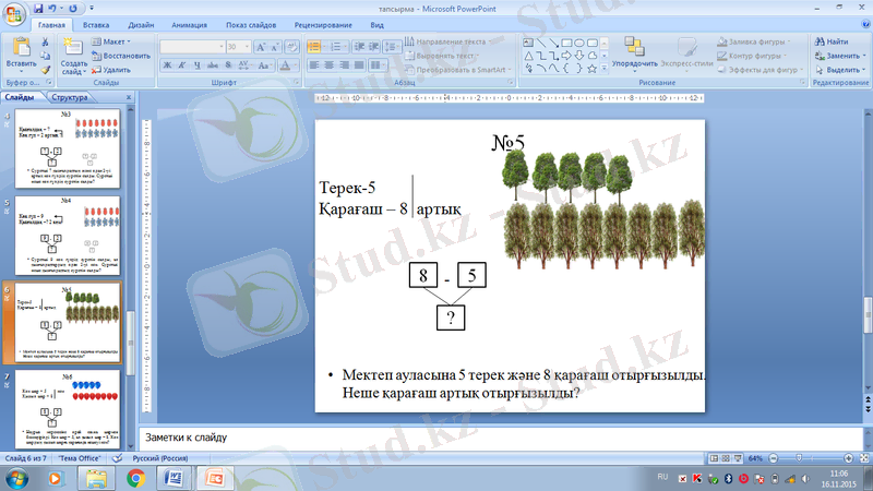 Мысалы: 5. Мектеп ауласына 5 терек және 8 қарағаш отырғызылды. Неше қарағаш артық отырғызылды?
