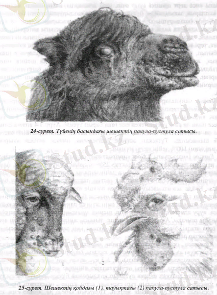 Індеттік ерекшеліктері . Шешекпен сүтқорекгілер мен қүстардырі бар- лық түрлері дерлік ауырады. Індеттенуді талдаған кезде вирустың қай түрінің қандай жануарларды ауруға шалдықтыратынын еекеру қажет. Жануарлардың кейбір түрлері сол түлікке ғана тэн шешек вирусыйа бейім, ал кейбір жа- нуарларда бүл вирустың бірнеше іүрлері ауру қоздырады.