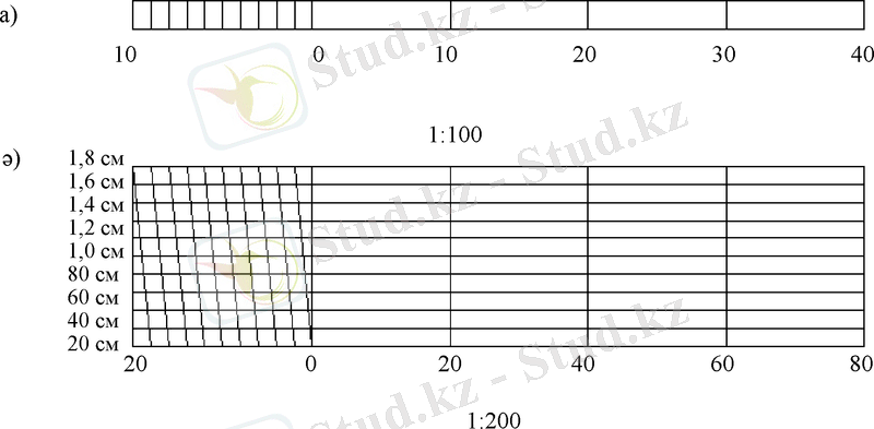 1-сурет. Масштабтар. а) сызықтық, ə) көлденең