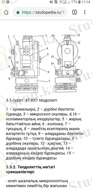 - Геодезиялық құралдардың құрлысымен (құрлымдық бөлшектерімен танысу) Теодолит құрлысымен танысу