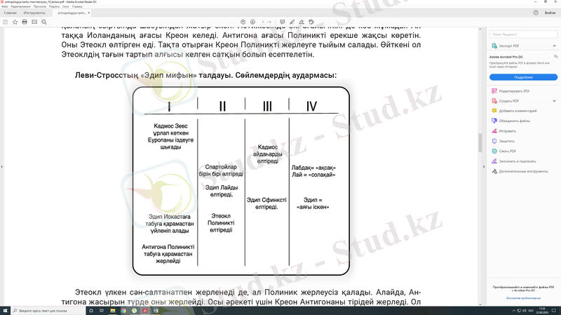 Леви-Стросстың «Эдип мифын» талдауы. Сөйлемдердің аудармасы:
