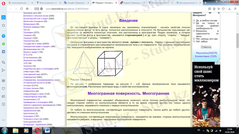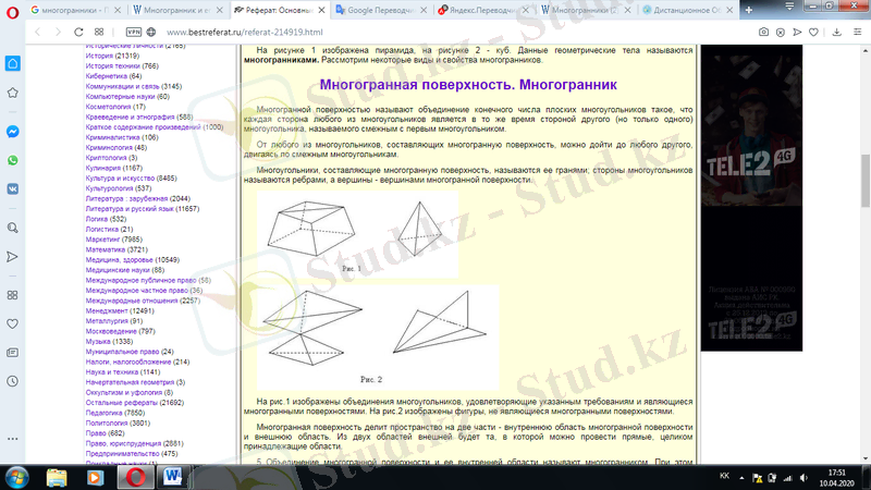 «Көпжақтар және көпжақтарды кескіндеу. Айналу беттері. Винттік беттер. Кеңістік қисық сызықтар»