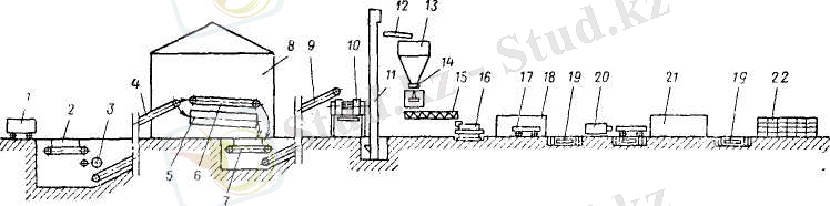 Қоймалау (мөлшерлегіш бункер, түсірумен және тиеумен