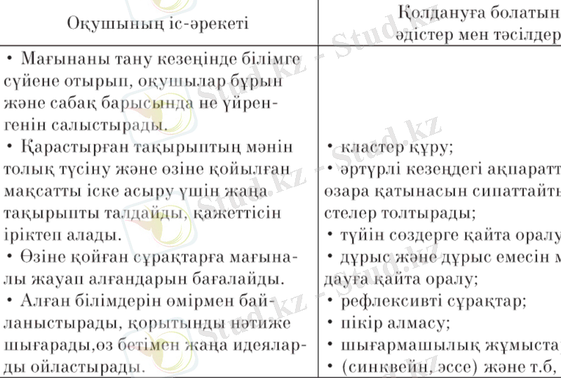 - әрбір оқушы сын тұрғысынан ойлауға қабілетті;