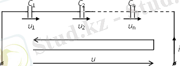 Кирхгофтың екінші заңы үшін конденсаторларға байланысты жағдайында жазуға болады (9-сурет) :