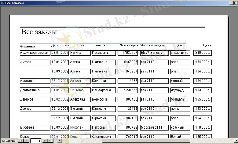 А) "Барлық тапсырыстар" есебі - "клиенттер" кестесі негізінде орындалды және дүкенде жасалған барлық мәмілелер туралы мәліметтерді қамтиды. Есеп құрастырушысы арқылы жасалған