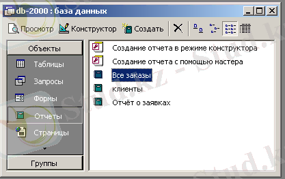 Деректер базасында үш есеп құрылған. Есептер терезесі 5-суретте көрсетілген