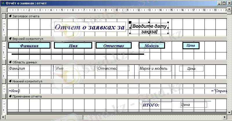В) "Өтінімдер туралы" есеп "өтінімдер туралы" сұрау салу негізінде орындалды және белгілі бір сұралатын күні жасалған мәмілелер туралы ақпаратты қамтиды. Конструктор фрагменті 6-суретте көрсетілген