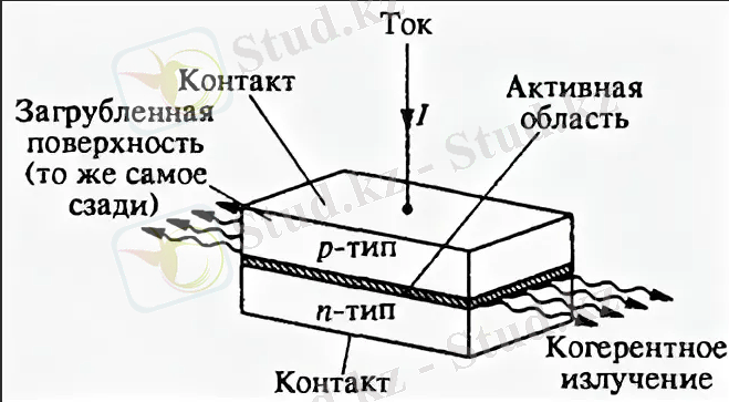 Жартылай өткізгіш лазерлердің типтік өкілі лазерлік диод-лазер болып табылады, онда жұмыс аймағы p-n жартылай өткізгішті өткел болып табылады (сурет-4) . Мұндай лазерде сәулелену электрондар мен тесіктерді рекомбинациялау есебінен болады.