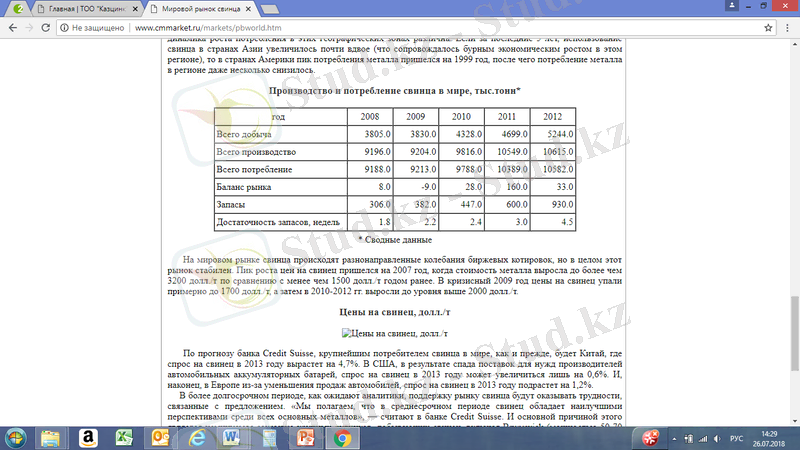 1. 1 Қорғасынның дүниежүзіндегі орны