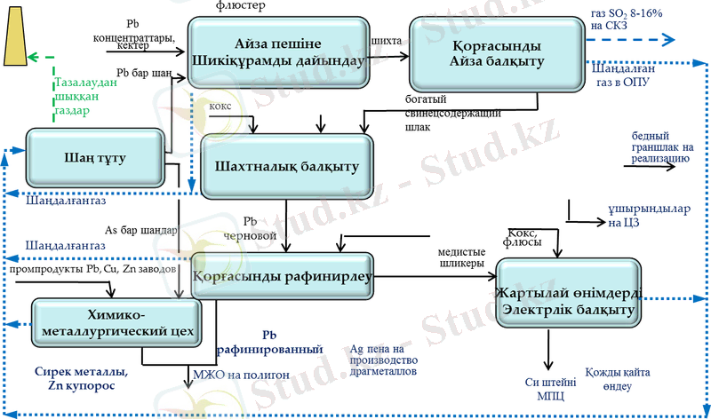 Сурет 1. Қорғасын өндірудің технологиялық схемасы