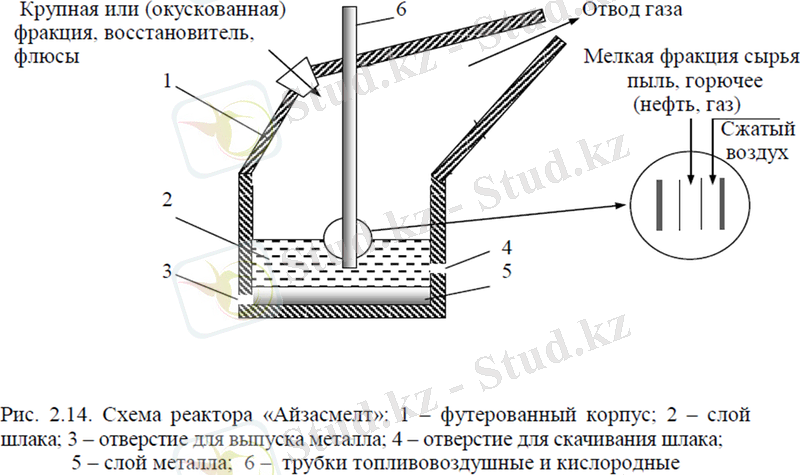 Сурет 2. «Айзасмелт» реакторының схемасы: 1-шегенделген корпус;