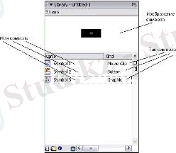 Естеріңізге сала кетейік, бұл кадр анимациясы. Бұл қозғалыстың түрлі фазаларын бейнелейтін бір үлгідегі кадрлардың көп саны. Мұндай бірізділік көрермен алдында өте жылдам бұрылады, нәтижесінде ол үздіксіз қозғалысты көреді. Көріп отырғаныңыздай, бәрі оңай. Барлық кинематограф және барлық теледидар кадр бойынша анимация негізінде негізделген. Сондықтан, сіз кешкі жаңалықтарды көргенде, кадр анимациясымен тап боласыз. Flash-да 2-суретте бейнеленген өз кітапханасы бар, ол фильмнің символдары мен импортталған элементтерін орналастыру орны болып табылады. Кітапхана әр элементтің алдында оның түрін көрсететін пиктограмма орналасқан мазмұн тізімі болып табылады. Элементтерді қалталарға топтастыруға болады, олардың әрқайсысын бөлек айналдыруға болады, бұл кітапхана мазмұнын көргенде экранның жылжуын азайтуға мүмкіндік береді. Қабаттар жағдайы сияқты, кітапхана элементтерінің саны жобаның әзірленуіне қарай тез ұлғаяды және егер оларды жүйелемесе, толық дамымайды.