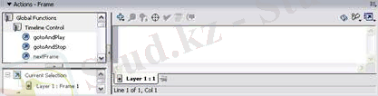 Flash MX нұсқасында Нысандар тығыз біріктірілген. Енді түймелер ActionScript арқылы басқаруға болатын шынайы нысандар болып табылады, ал бейнелер түймелердің оқиғаларын ала алады. Actions тақтасы 3-суретте бейнеленген.