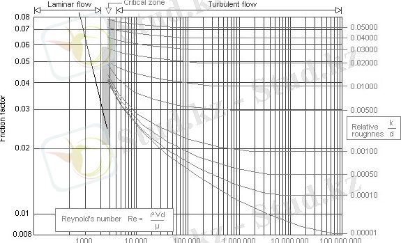 12) Кестеден Мудидің үйкеліс коэффициенті табылды. Ол 0, 04 тең. Сұйықтық ағынының жылдамдығын және үйкеліс коэффициентін біле отырып, қысымды тереңдікте бөлуді табамыз.