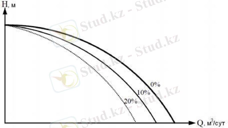Газдың батырмалы сораптардың жұмысына әсер ету дәрежесін анықтайтын негізгі факторларға сорап кезіндегі газ құрамының деңгейін жатқызады. Сораптың арынды сипаттамасының төмендеуіне және сораптың жұмыс режимінің оңтайлы аймақтан солға ығысуына сәйкес арынды қисық бойынша (сурет 3. 4 ) бос газдың болуын әкеледі.