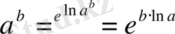 Кезкелген дәрежеге шығару үшін экспонента мен натурал логарифмді қолданады. Себебі