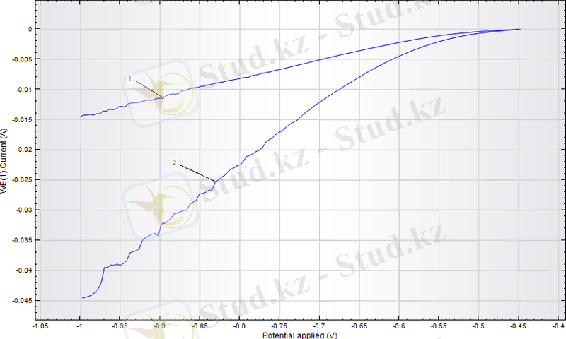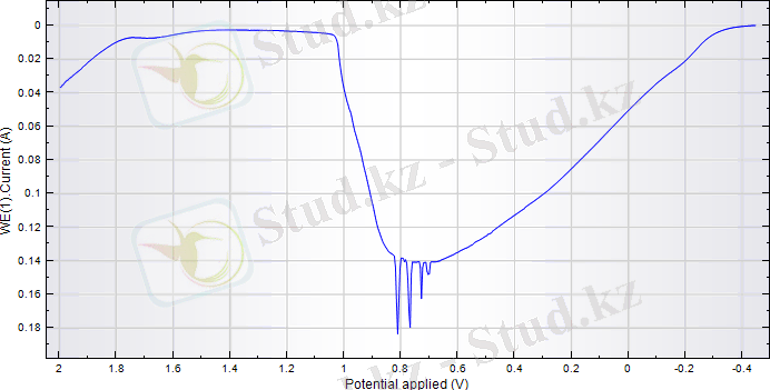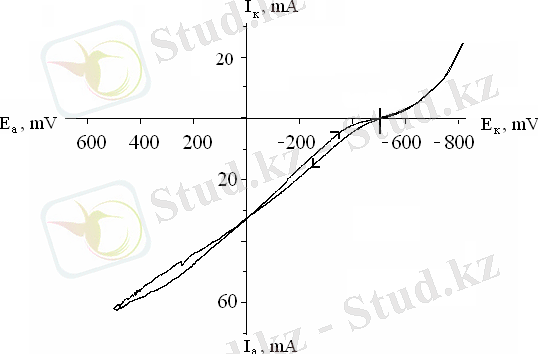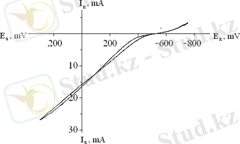 Потенциалдың жылжуы катодқа қарай бағытталған кезде де қисықтың жүру жолы қайталанылады, «минус» 490 мВ потенциалында сутегі иондарының тотықсыздануы нәтижесінде катодтық ток пайда болады. 2. 4- суреттегі катодты - анодты поляризациялық қисықтың сипаттамасы жоғарыда айтылған қисықтан айырмашылығы жоқ.