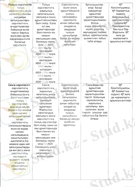 Тақырыбы « Шаруашылық серіктестіктің негізгі түрлеріне сипаттама: толық серіктестік т. б. акционерлік қоғам, өндірістік кооператив, еншілес және бір-біріне тәуелді шаруашылықтық серіктестік »