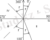 Кесте 1. - Дирекциондық бұрыштар мен румбтар арасындағы байланыс