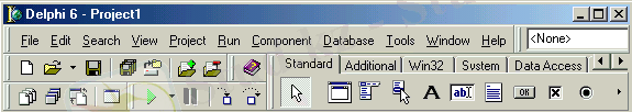 Delphi өте қарапайым түрде жүктелінеді, яғни Borland Delphi 7 менюінен Delphi 7 командасын таңдау арқылы жүзеге асырылады. Delphi жүктелгеннен кейін экранда жұмыс жасауға қажетті терезе пайда болды. Мұнда бір терезенің орнына экранда бес терезе пайда болады: